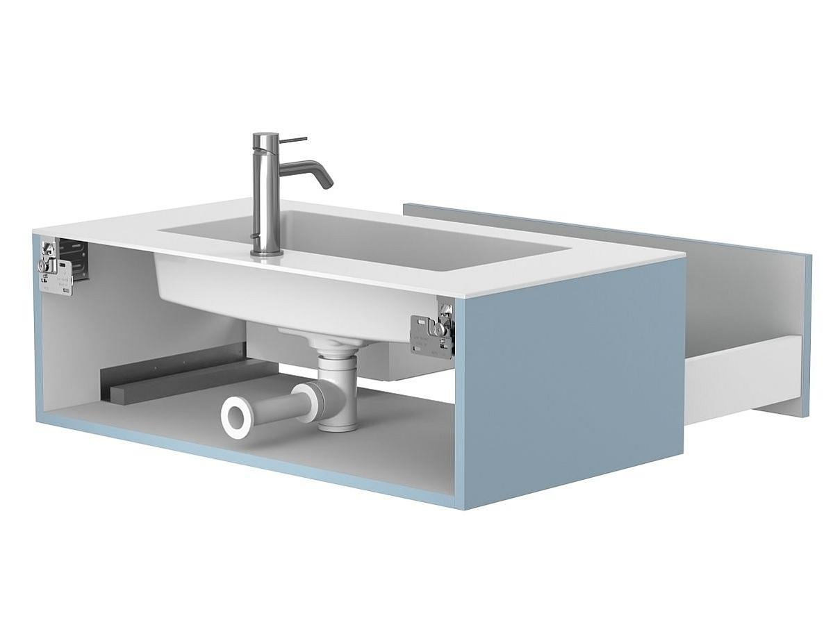 Для производства корпуса и фасадов используется влагостойкий МДФ или ДСП с лазерной кромкой, с качественным лакокрасочным покрытием или акриловым ламинированием. Это гарантирует долговечность и сохранение внешнего вида даже в условиях повышенной влажности.