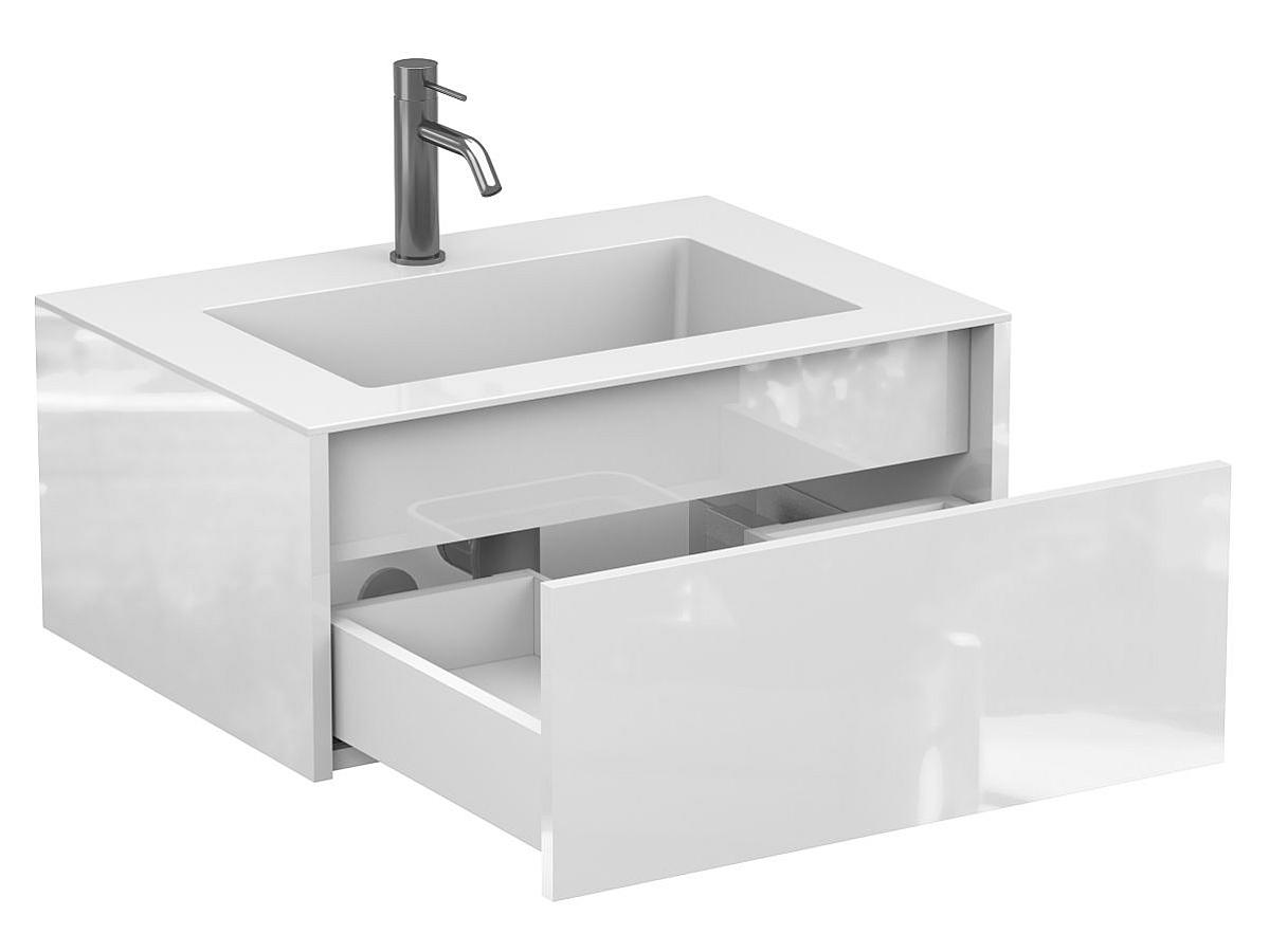 Тумбы UNO в комплекте с умывальниками MIRAGGIO — вместе они образуют гармоничный, завершённый комплект. Конструкция учитывает удобство монтажа и ежедневного использования: ящик открывается плавно, а подвесной формат позволяет легко поддерживать чистоту под тумбой.