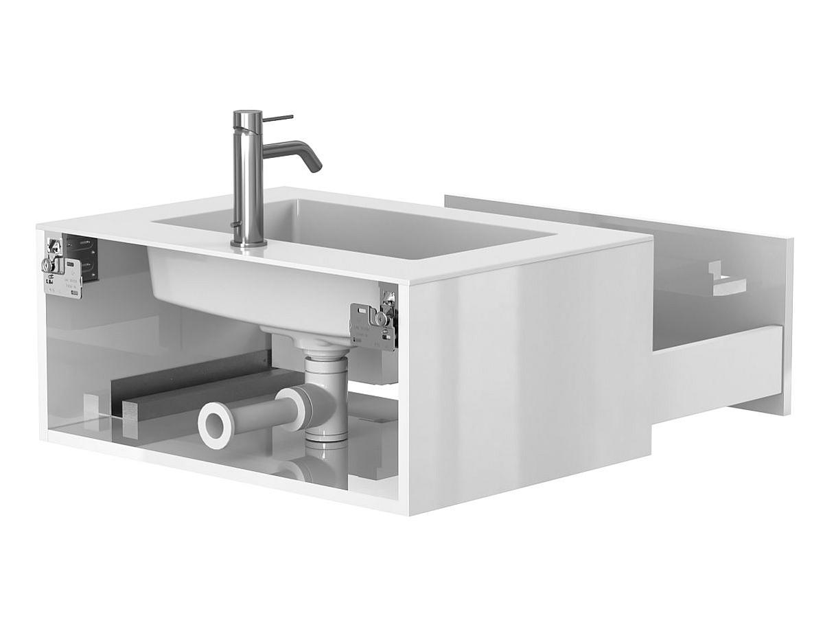 *Внимание! Тумба поставляется в комплекте с раковиной, однако сифон и смеситель не входят в базовую комплектацию — их необходимо приобрести отдельно. На изображении эти элементы добавлены для полного визуального понимания внешнего вида изделия.