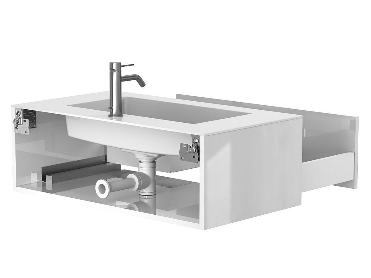 *Внимание! Тумба поставляется в комплекте с раковиной, однако сифон и смеситель не входят в базовую комплектацию — их необходимо приобрести отдельно. На изображении эти элементы добавлены для полного визуального понимания внешнего вида изделия.