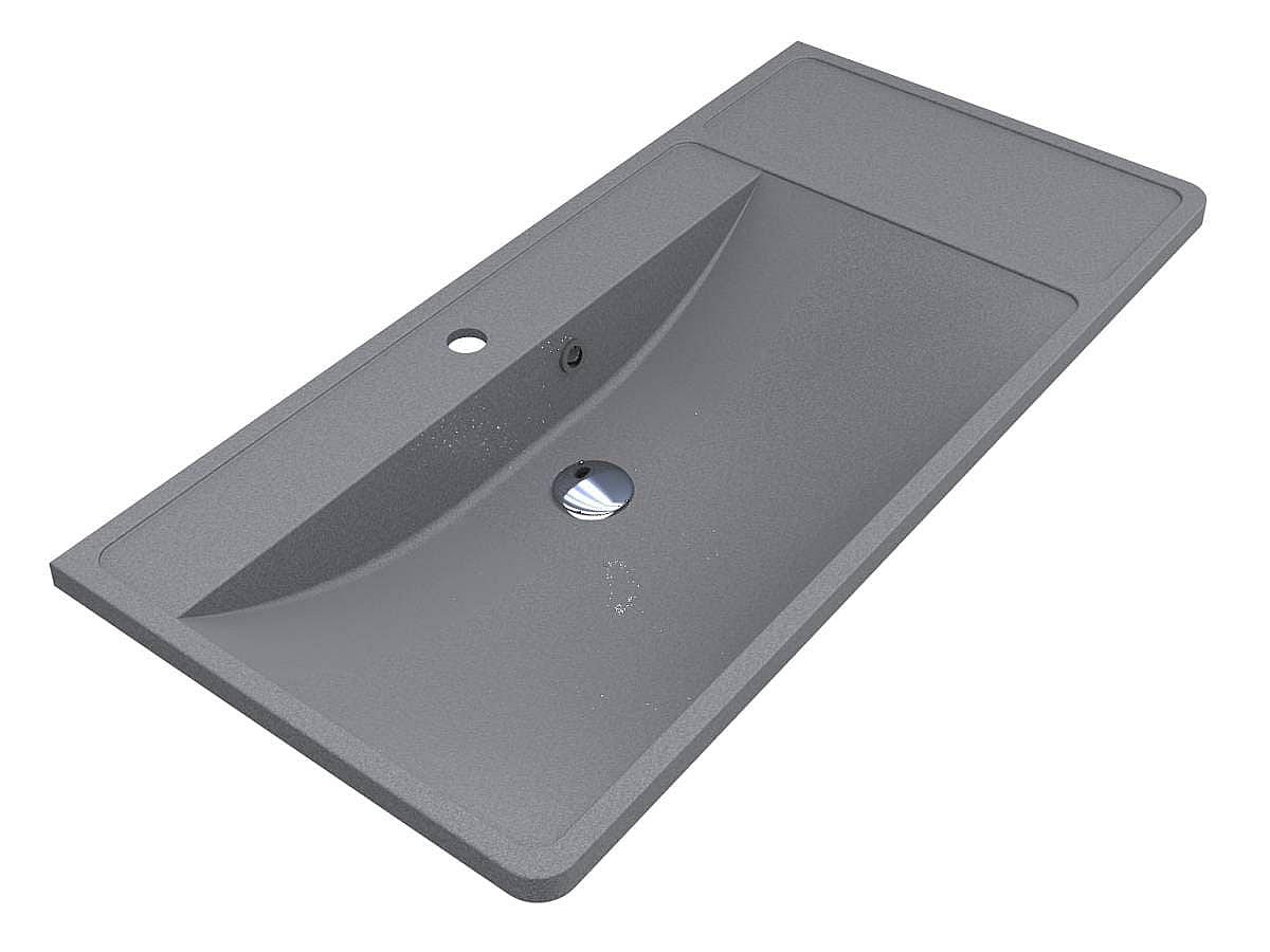 Сірий умивальник із кварцового піску SACRAMENTO - це практичне рішення для ванної кімнати в класичному стилі. Прямокутна раковина з напівкруглою чашею та великим крилом праворуч легко встановлюється на тумбу. Кромка по периметру умивальника перешкоджає падінню предметів з краю раковини та попаданню води на бічні стінки меблів. Має врізний тип монтажу.