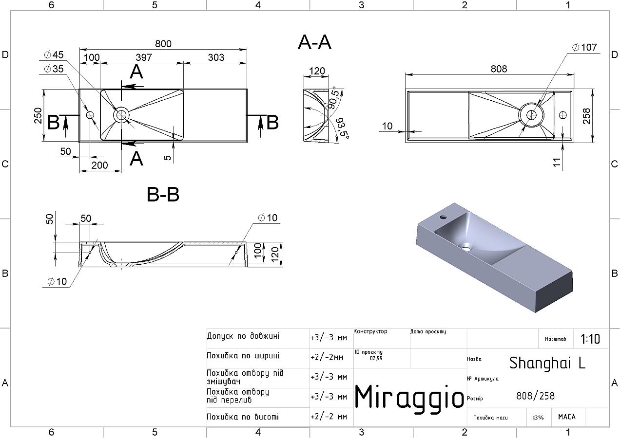 Характеристики Умивальник SHANGHAI L MIRASOFT