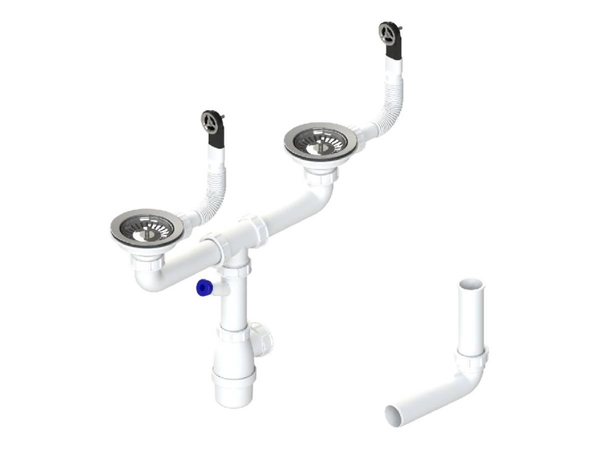 Характеристики Сифон для мийки подвійний з 2 переливами