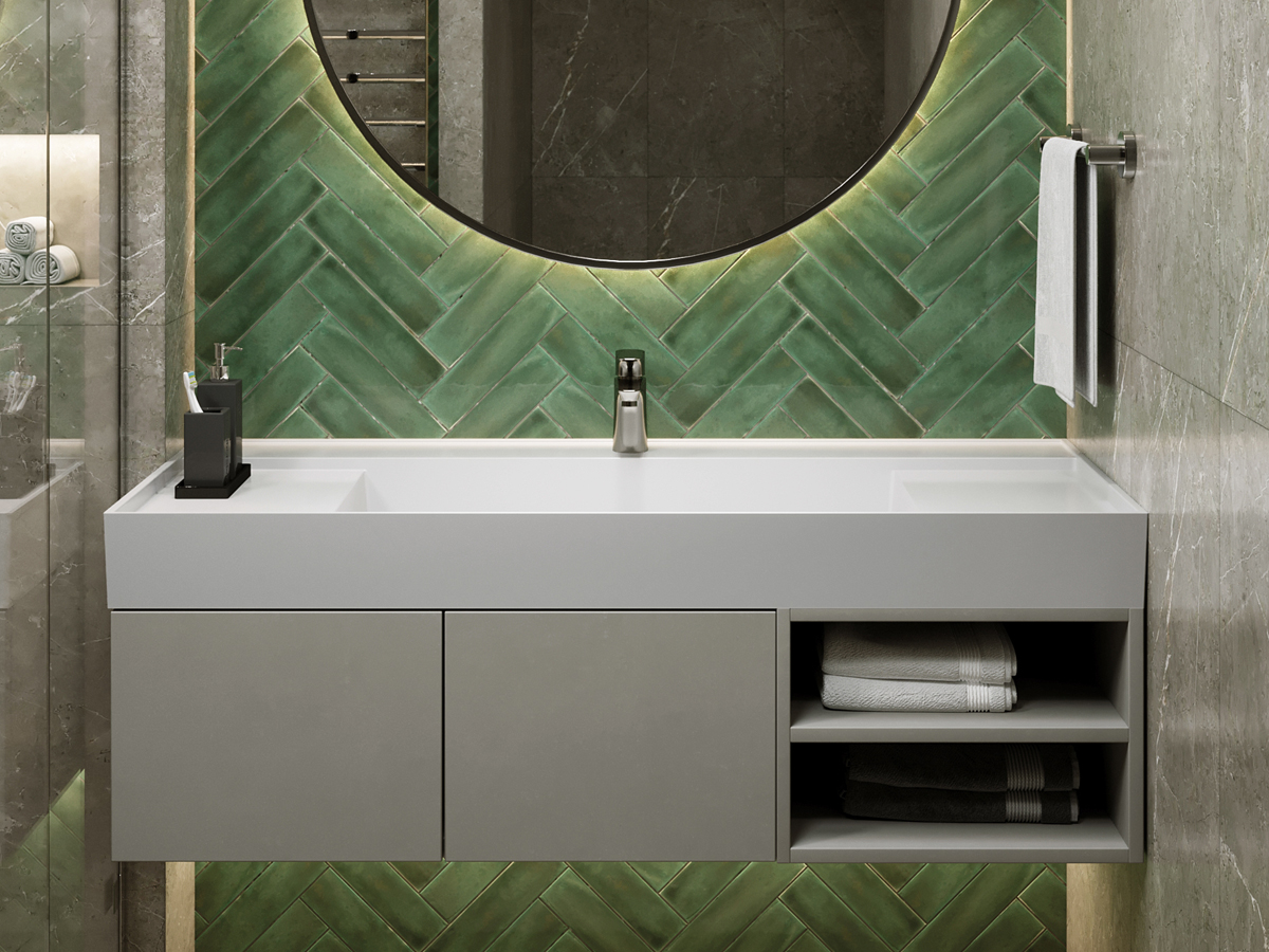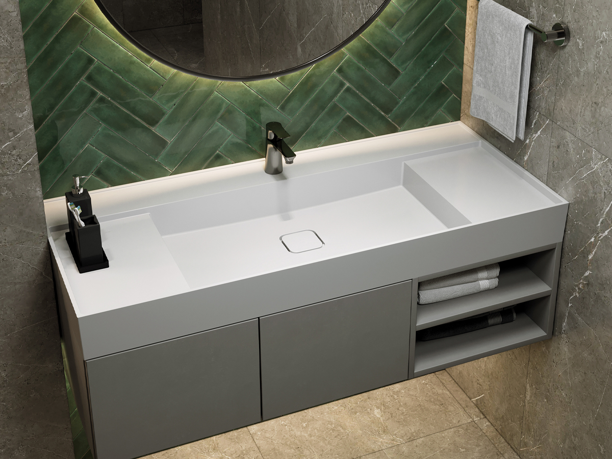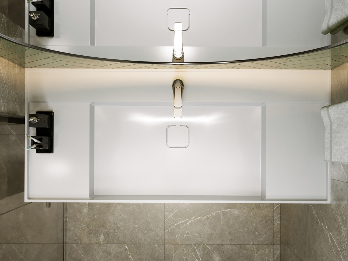 Умивальник SOUL 1200 можна замовити в технологіях MIRAMARBLE та MIRASOFT.