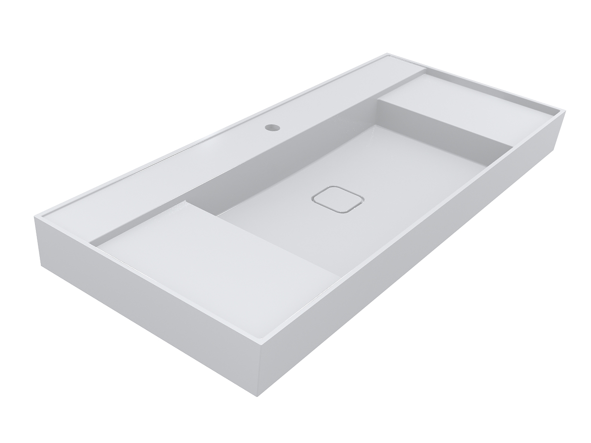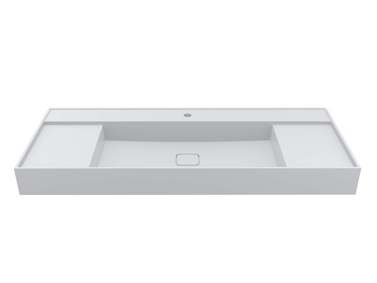 Глянсовий умивальник SOUL 1200 прямокутної форми з чіткими лінями стане безпрограшним вибором для просторих ванних кімнат. Чаша розташована по центру, а особливість цього умивальника - додаткова поверхня для аксесуарів з обох сторін захищена невеликими бортами, які завадять падінню косметики чи інших аксесуарів на підлогу та протіканню води. Розташування додаткової поверхні з обох боків дозволяє ефективно організувати простір навколо умивальника, зберігаючи при цьому естетичний вигляд. Завдяки значній ширині, цей умивальник забезпечує максимальний комфорт і функціональність. Передбачено кілька варіантів монтажу: підвісний на стіну, встановлення на тумбу або монтаж в стільницю. За замовчуванням в моделі передбачені отвори для кріплень для підвісного типу монтажу. Додаткова обрізка по периметру моделі не передбачена.