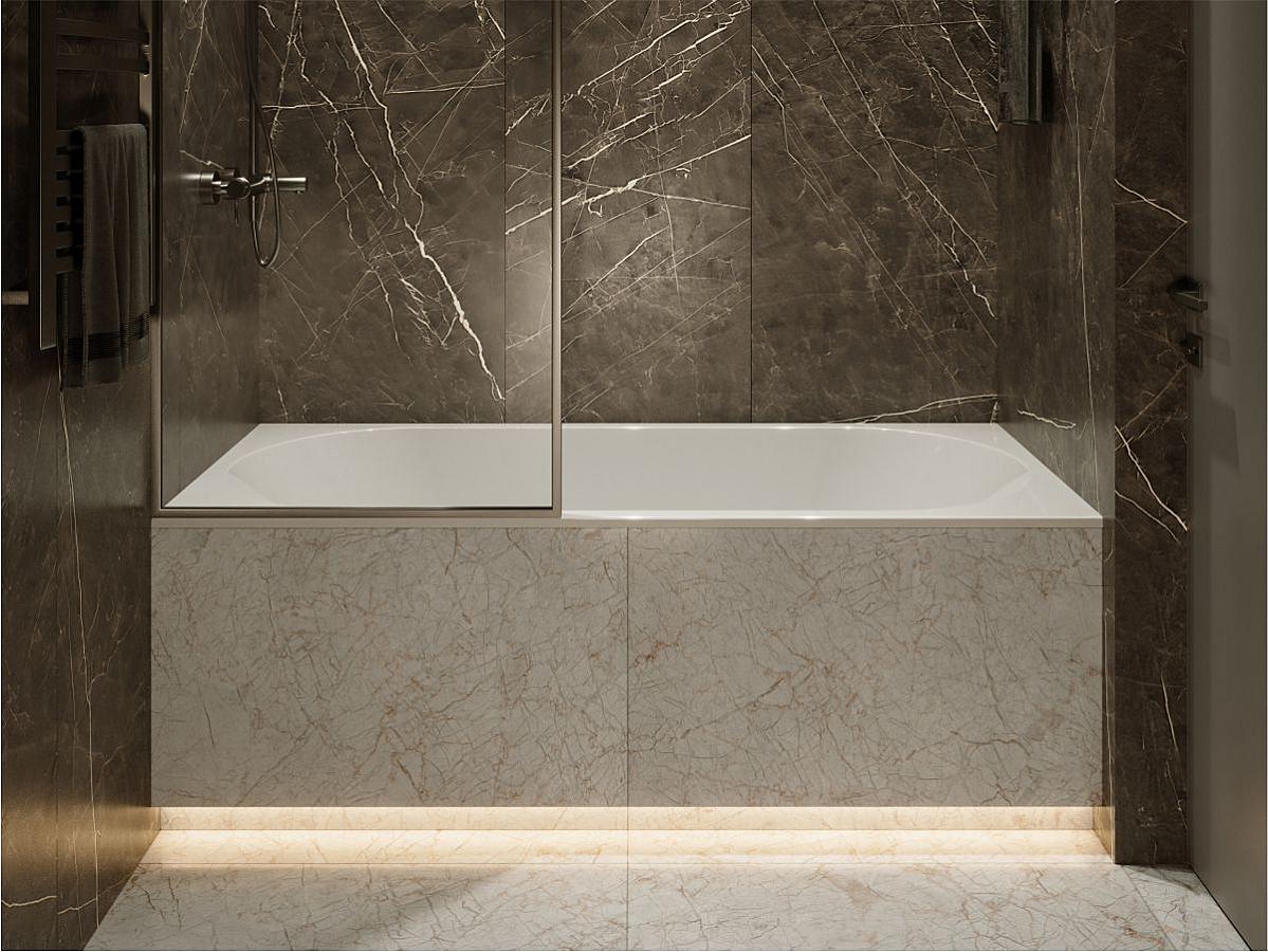 Вбудована ванна TASMANIA від MIRAGGIO – має елегантний сучасний дизайн з плавними лініями та класичною овальною формою чаші. Злегка нахилені стінки забезпечують зручне розташування тіла під час купання. Бічні крила розширюють простір навколо ванни, створюють додаткову поверхню для розміщення гігієнічних аксесуарів. Довжина 1800 мм дозволяє інтегрувати ванну у невеликий простір, забезпечуючи достатньо місця для зручного користування. Попри невеликі розміри, об'єму 340 л цілком достатньо для комфортного використання та повного занурення у воду. Вбудована ванна максимально адаптується в дизайн кімнати, створюючи відчуття єдності та гармонії.