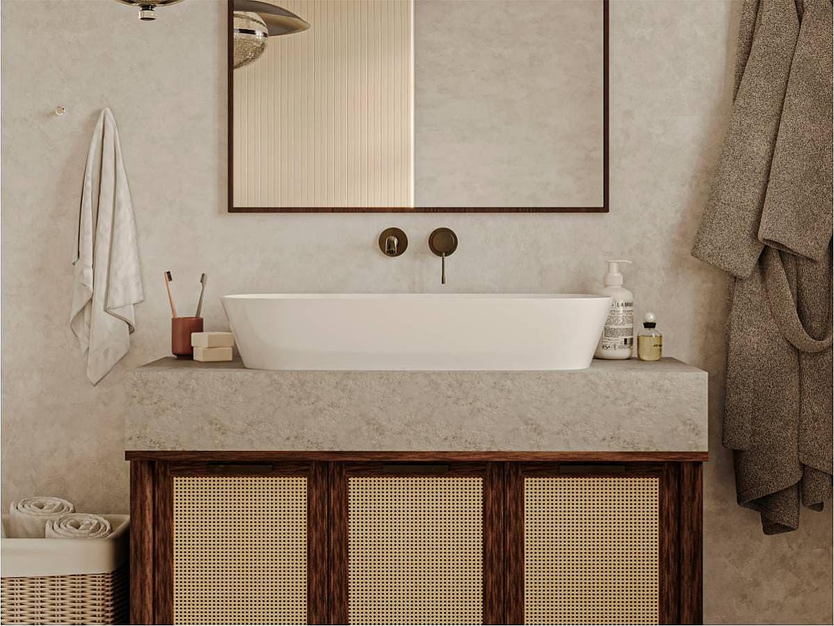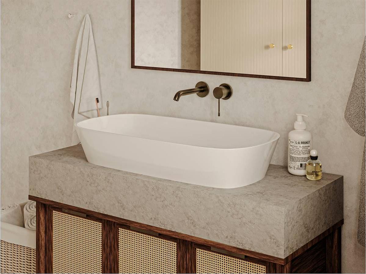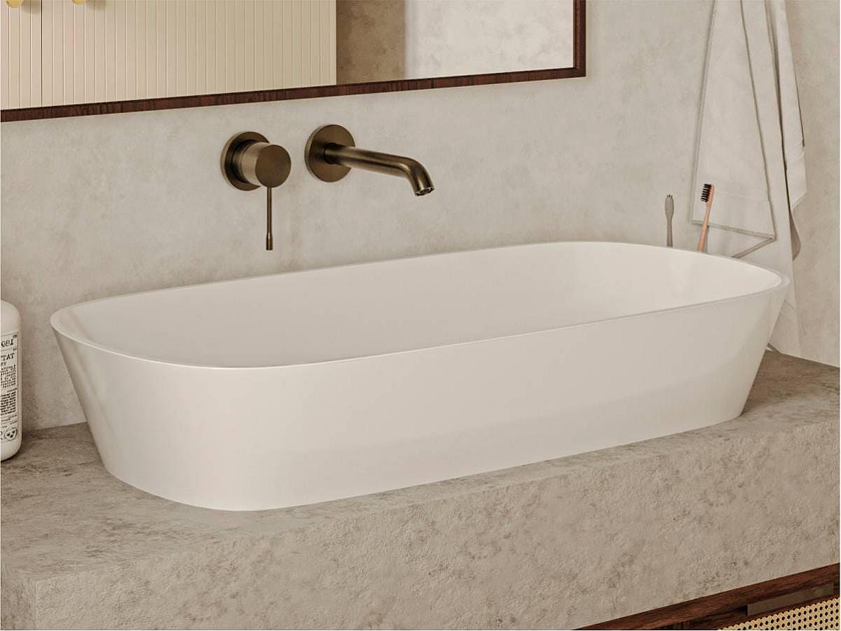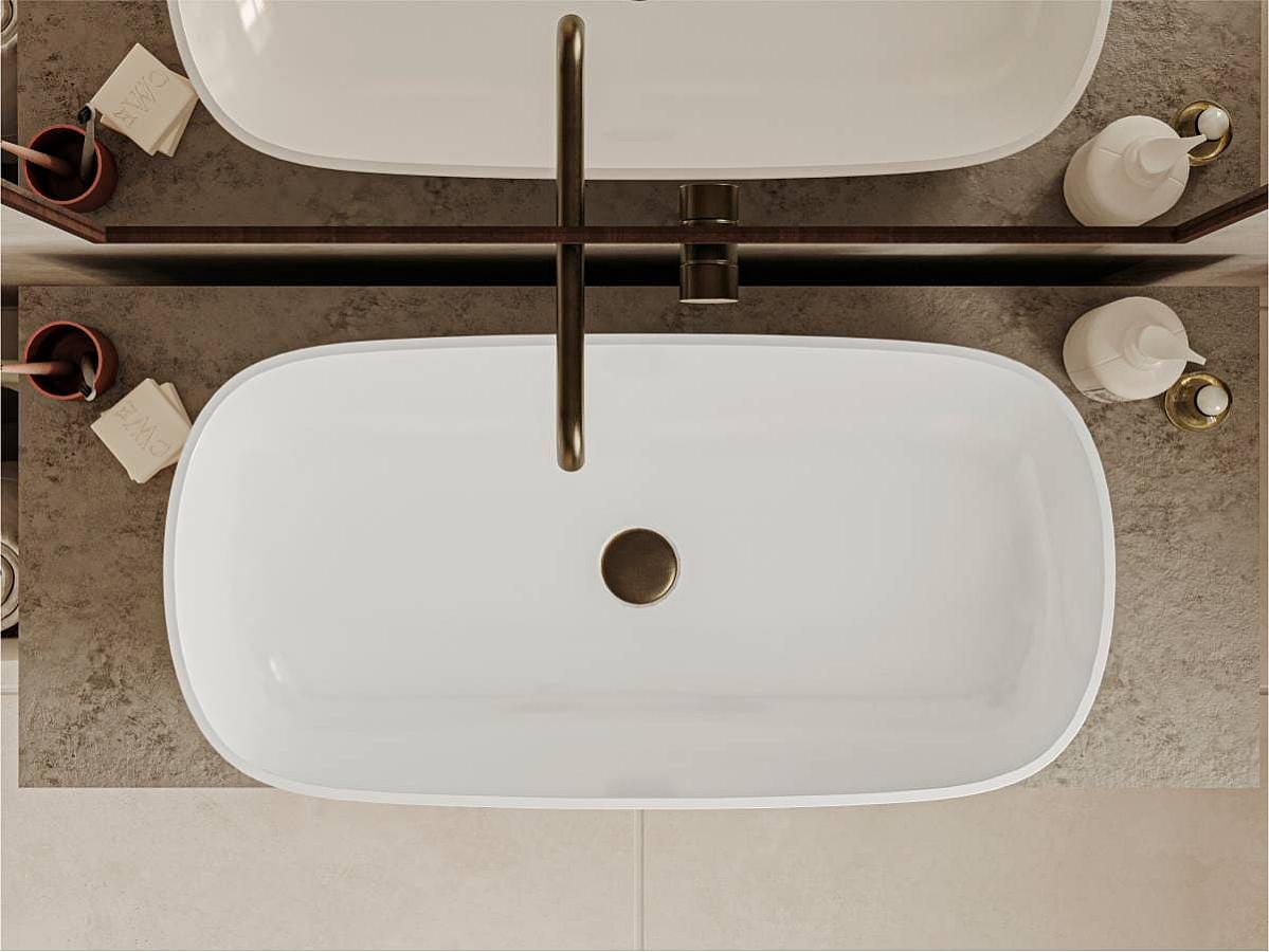 Трапецієвидний умивальник з литого мармуру TRIPOLI - ідеальна модель для просторої ванної кімнати. Неглибока чаша не позбавляє її комфорту використання. Раковина передбачає окремостоячий або настінний змішувач. Має накладний тип монтажу.