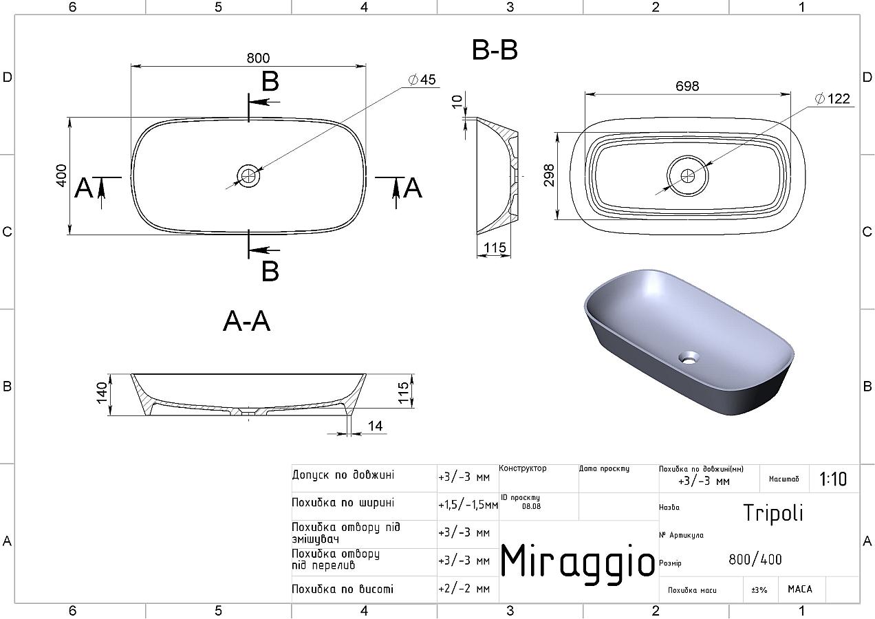 Сантехніка MIRAGGIO виробляється за авторською технологією змішування бокситу* і поліефірної смоли у вакуумі. Матеріал умивальника - MIRASOFT. Виріб має однорідну структуру на всю товщину стінок, без додаткового покриття. У матеріалі умивальника відсутні мікропори, що виключає розвиток бактерій всередині і на поверхні стінок. Поверхня умивальника - матова.