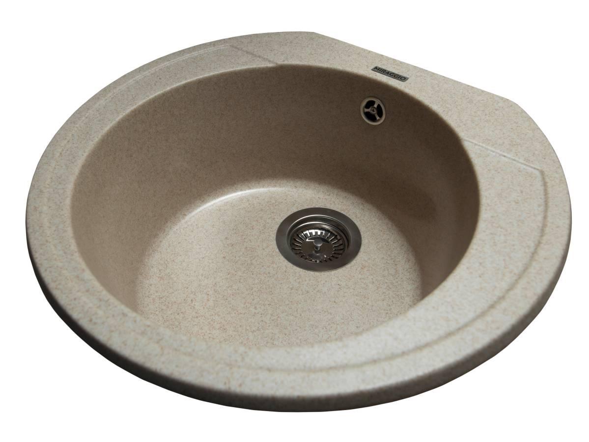 Кругла кухонна мийка з кварцового піску TULUZA в пісочному кольорі дуже містка, незважаючи на свої габарити. Біля змішувача можна поставити миючий засіб. Ця модель підійде під будь-який дизайн інтер'єру. Мийка має врізний тип монтажу.