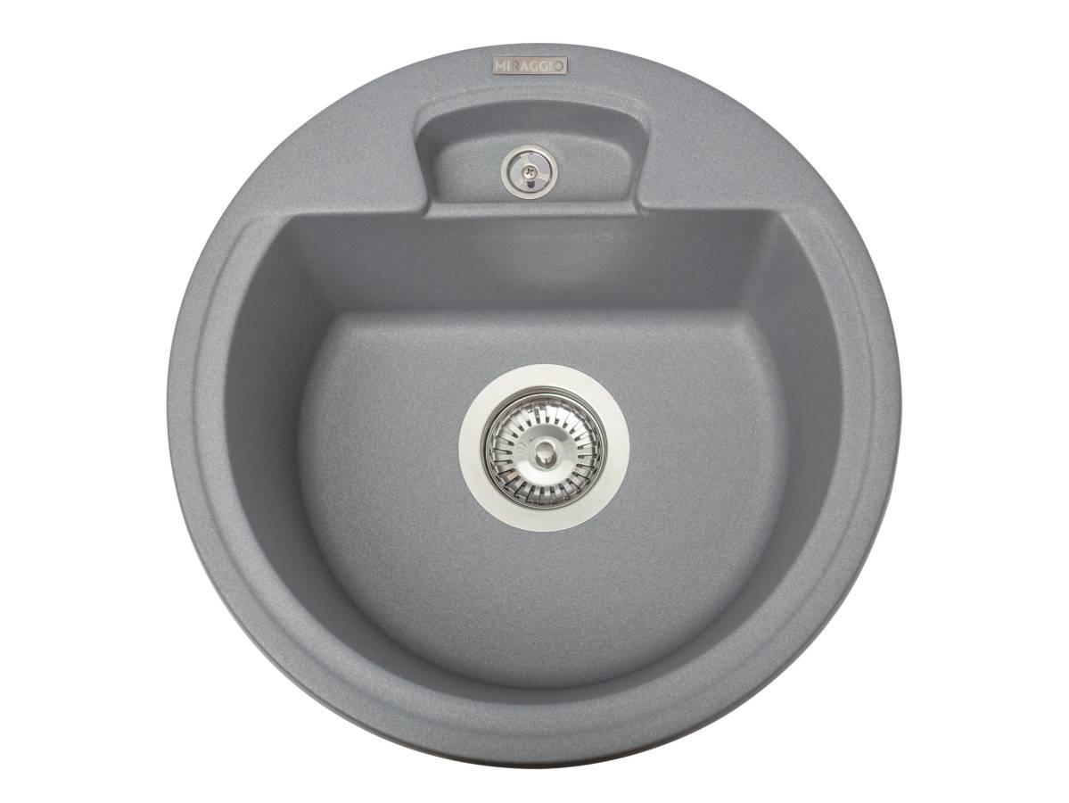 Сіра кругла кухонна мийка з кварцового піску VALENCIA - наша найкомпактніша модель. Універсальна мийка, яке підійде під будь-який дизайн кухні. Змішувач можна розмістити праворуч або ліворуч, вибір за вами. Біля змішувача можна поставити миючий засіб. Мийка має врізний тип монтажу.