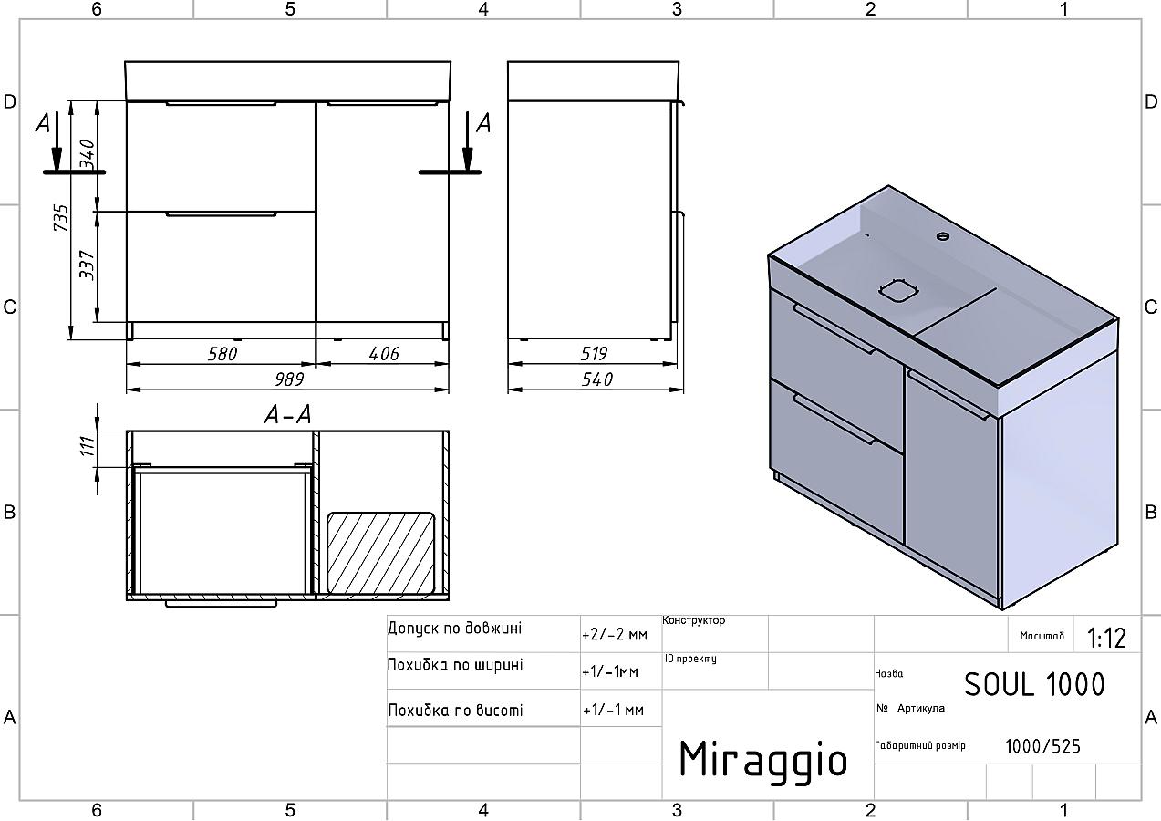 Умивальник, тумба у зібраному вигляді