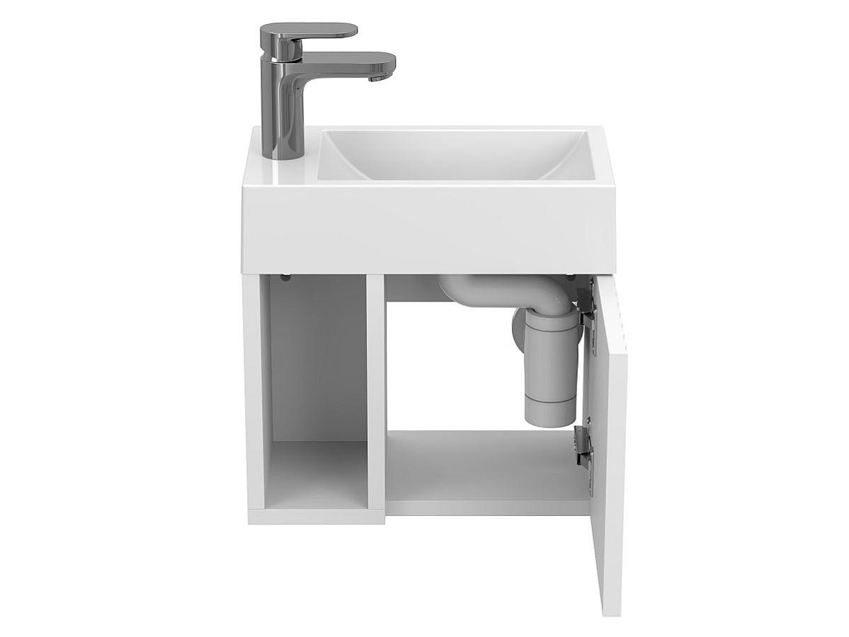 • Компактність і функціональність. Розміри тумби адаптовані під компактні приміщення, а конструкція з відкритою нішею дозволяє зручно зберігати необхідне під рукою — рушники, засоби гігієни або декор.