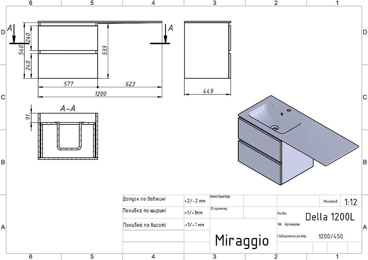 Документація Тумба підвісна LUMO Біла матова з умивальником DELLA 1200 L
