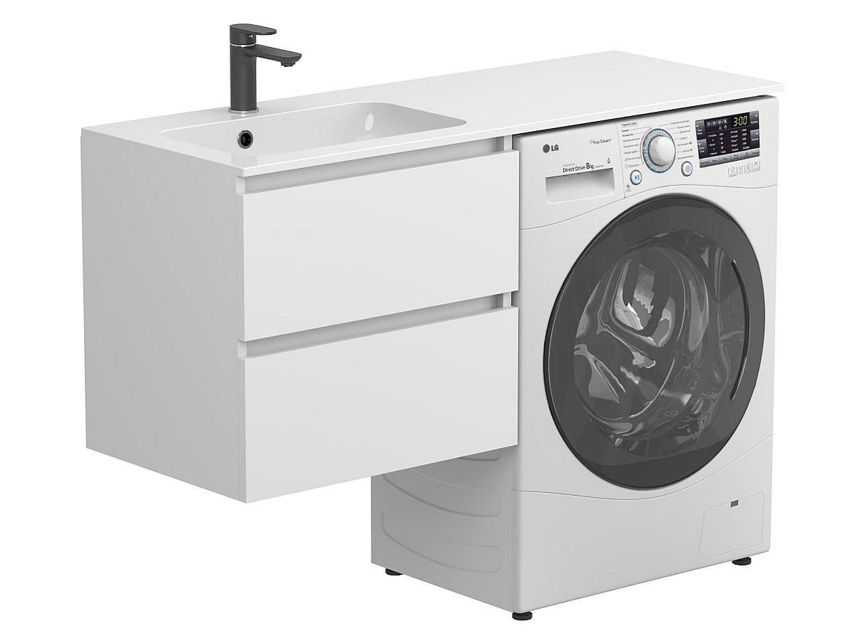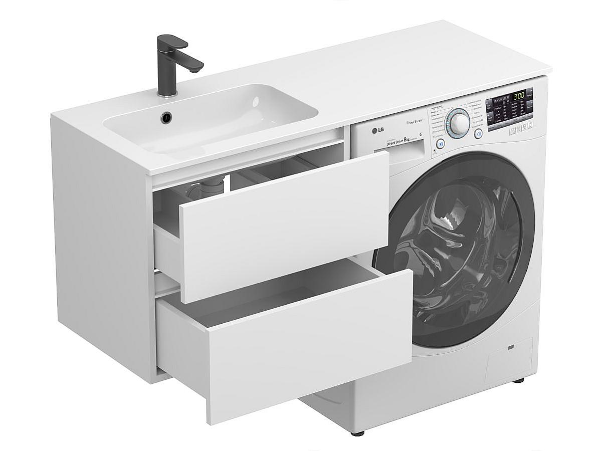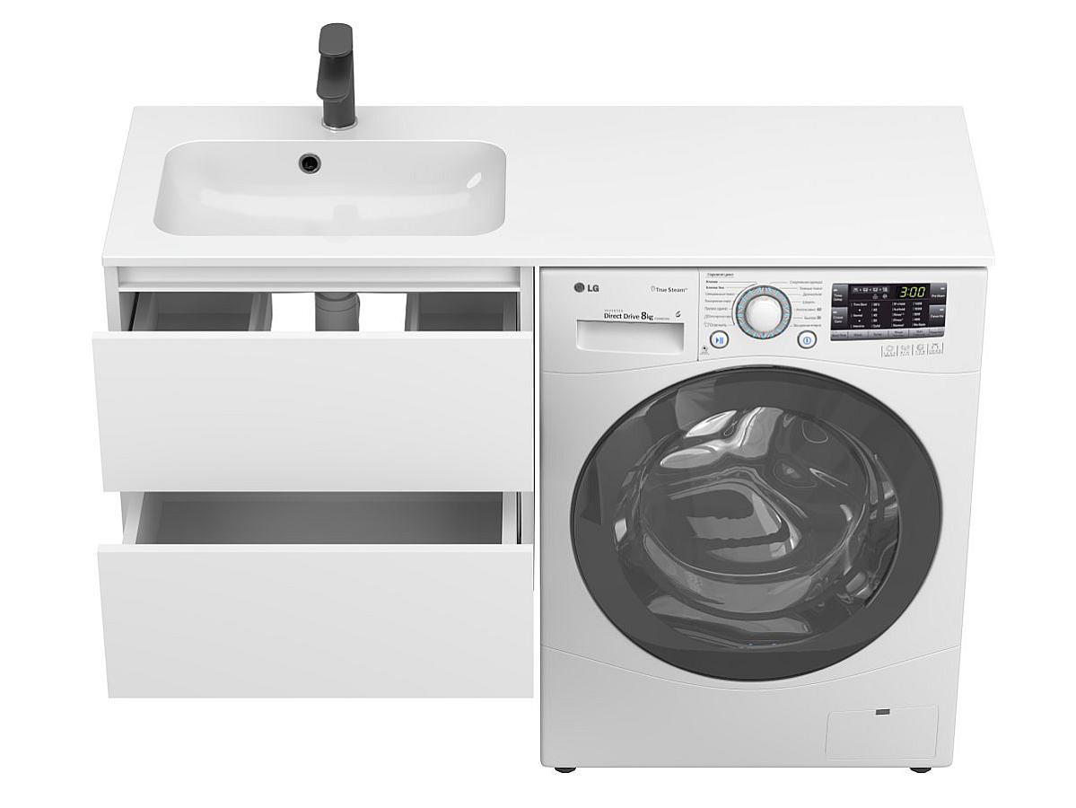 * Тумба постачається в комплекті з умивальником. Пральна машина не входить до комплекту і представлена на зображенні виключно для прикладу інтеграції.