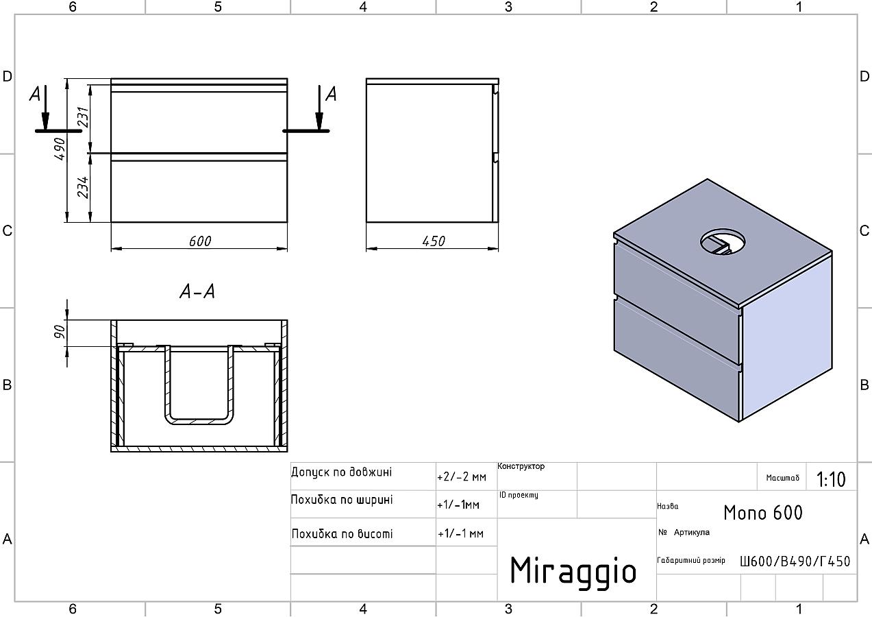 Документація Тумба підвісна MONO 600 Біла глянцева з умивальником NICE
