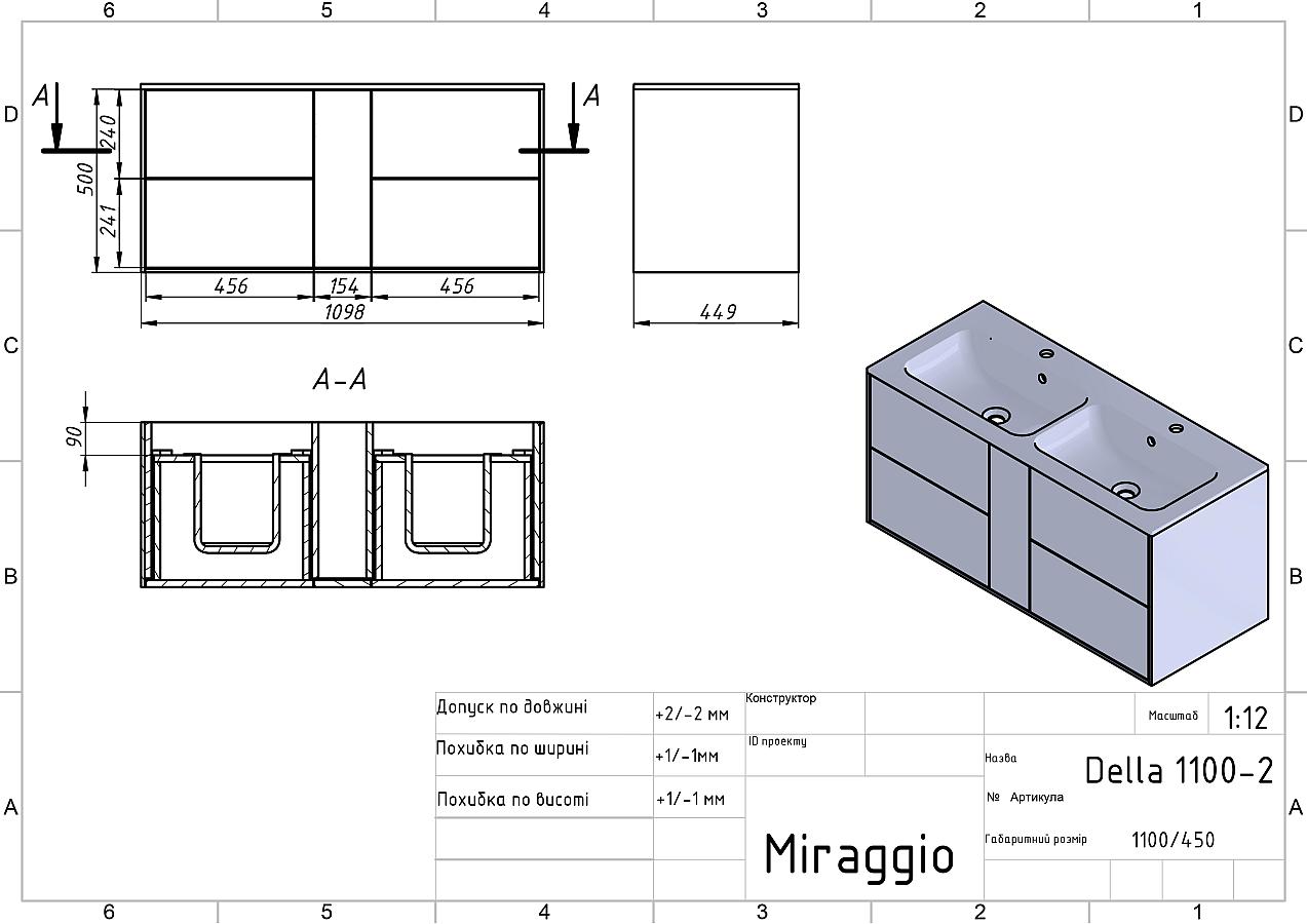 Документація Тумба підвісна SPACE Біла soft-touch з умивальником DELLA 1100 D