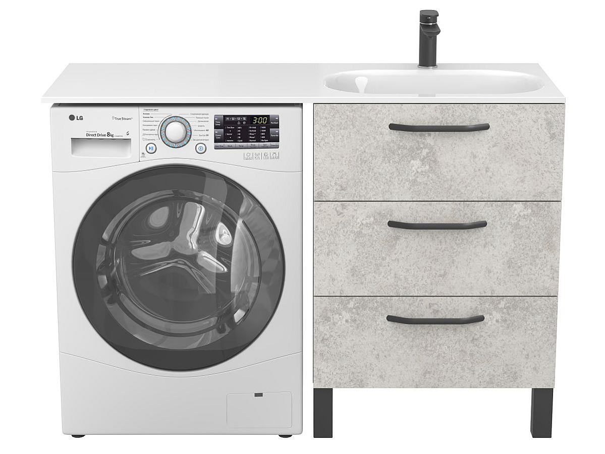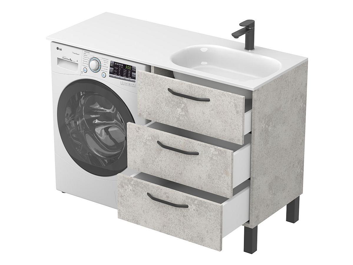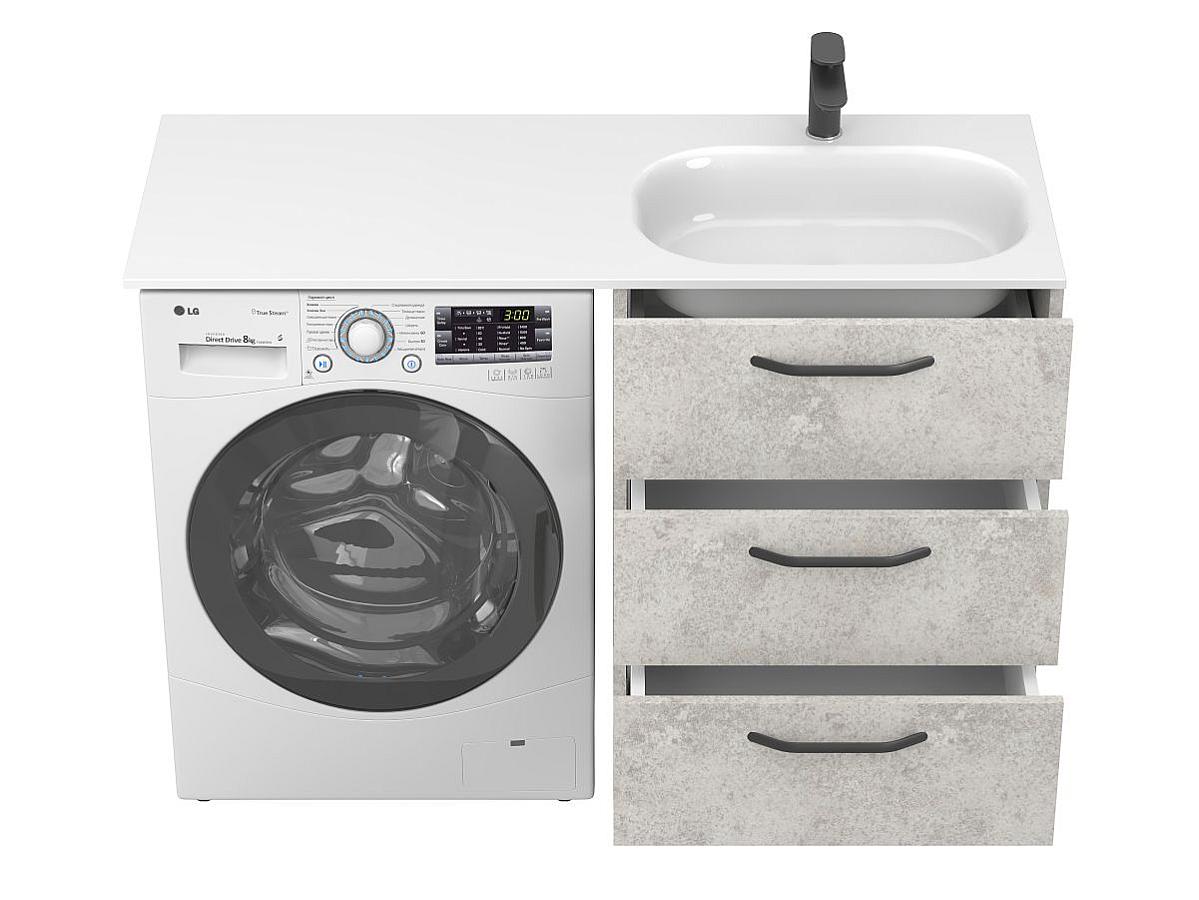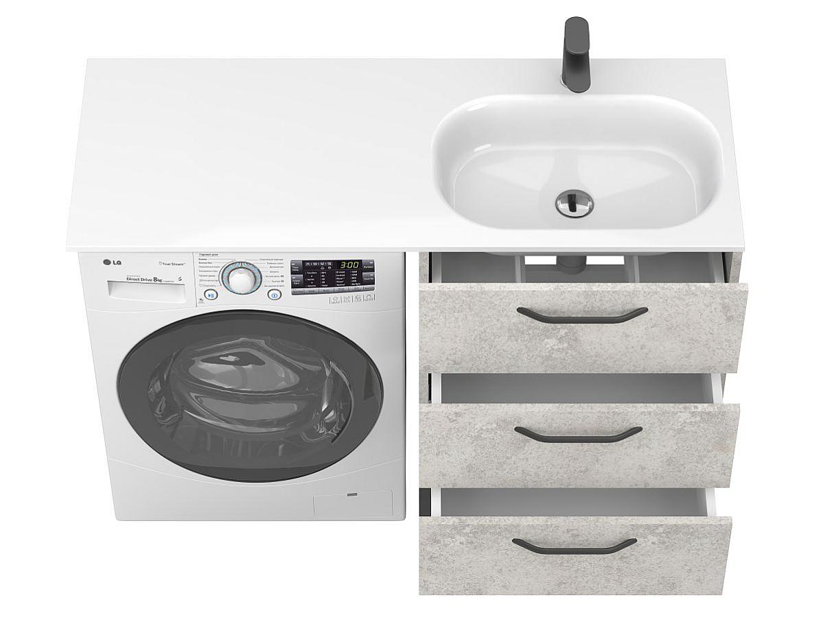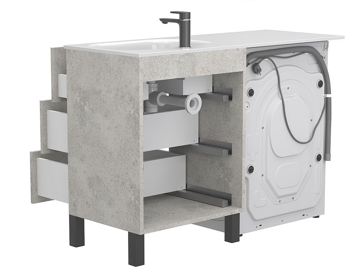 Завдяки розумній конструкції, умивальник накриває одразу і тумбу, і пральну машину, утворюючи єдину робочу поверхню та надаючи інтер’єру завершеного вигляду.
