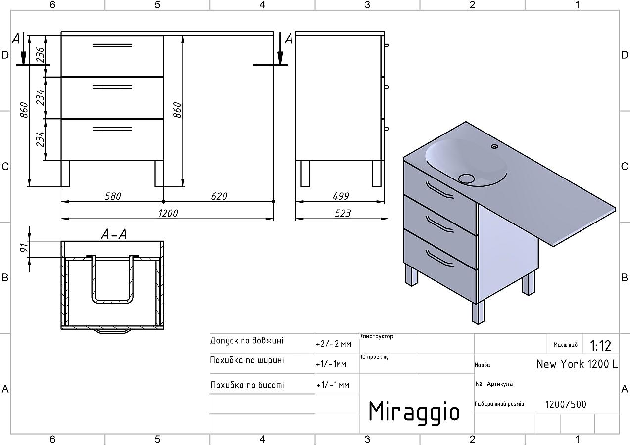 Документація Тумба підлогова TESSA Камінь сірий з умивальником NEW YORK 1200 L