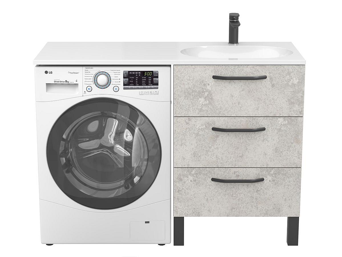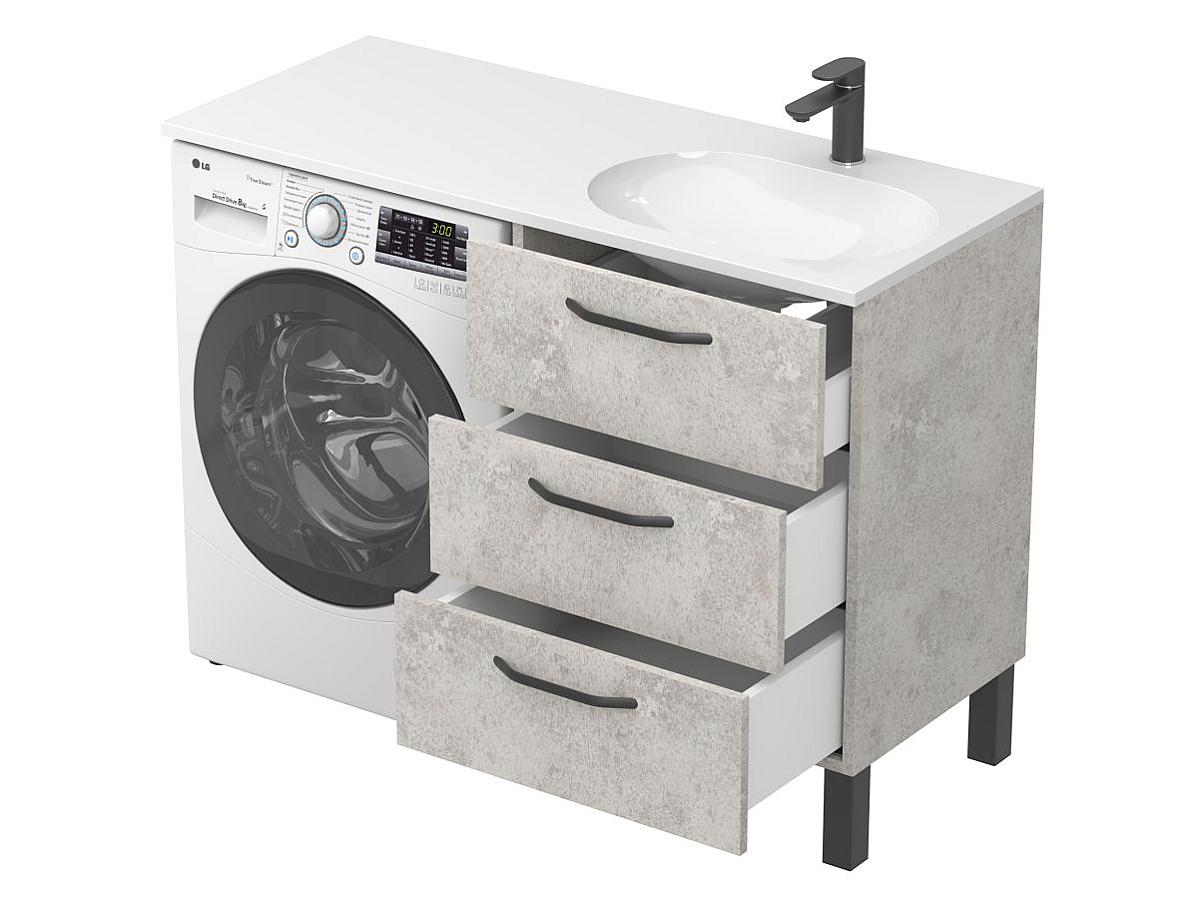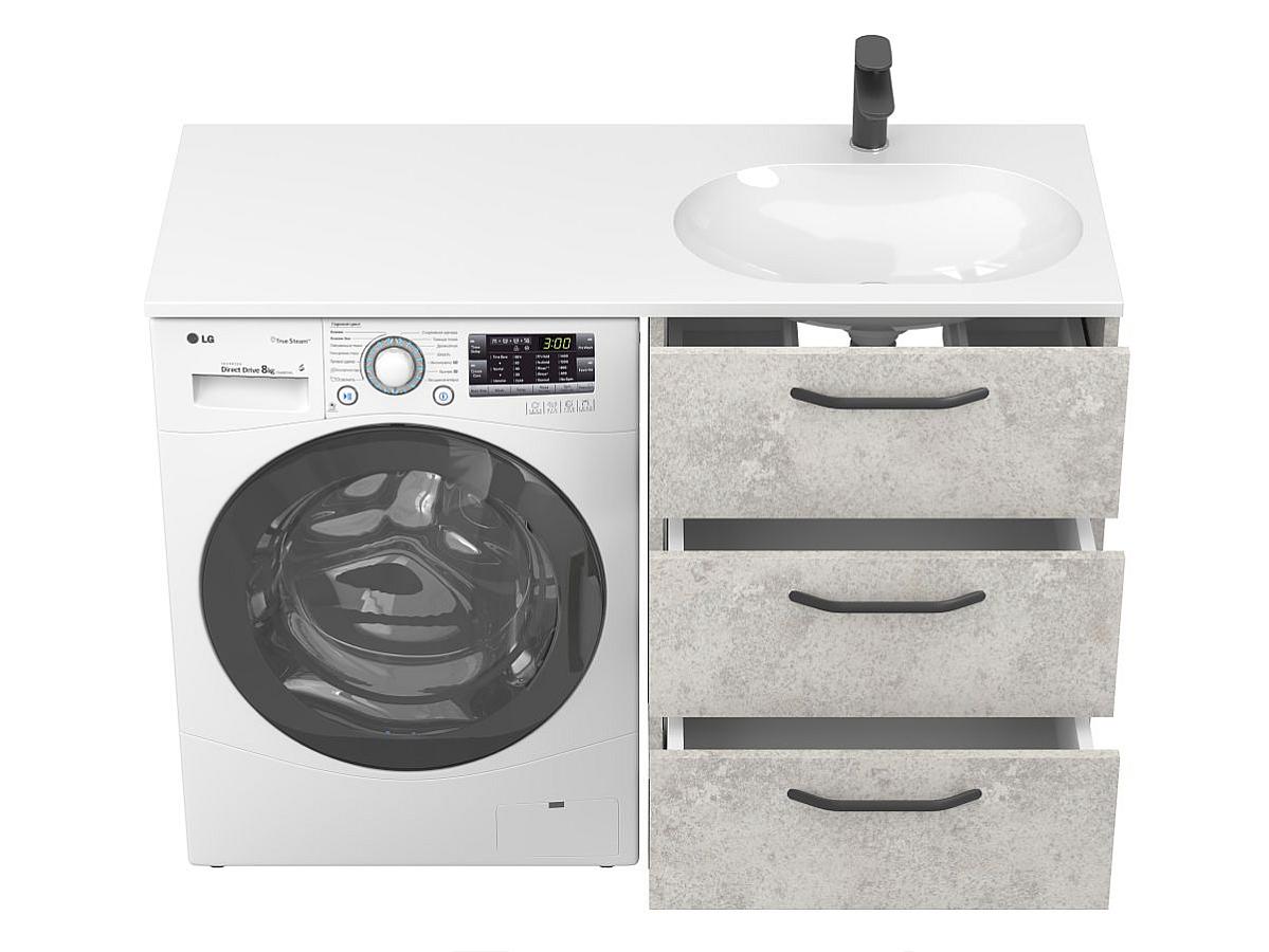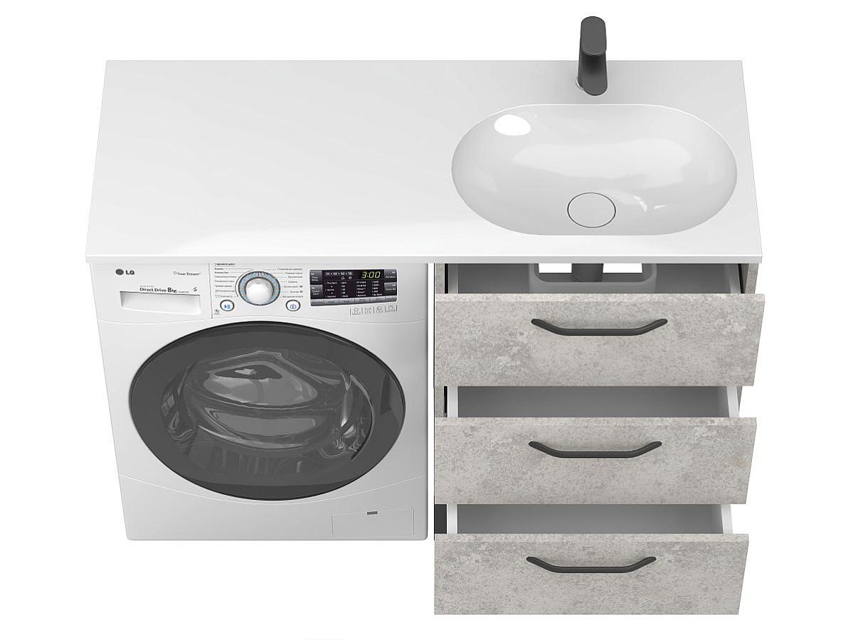 Завдяки розумній конструкції, умивальник накриває одразу і тумбу, і пральну машину, утворюючи єдину робочу поверхню та надаючи інтер’єру завершеного вигляду.