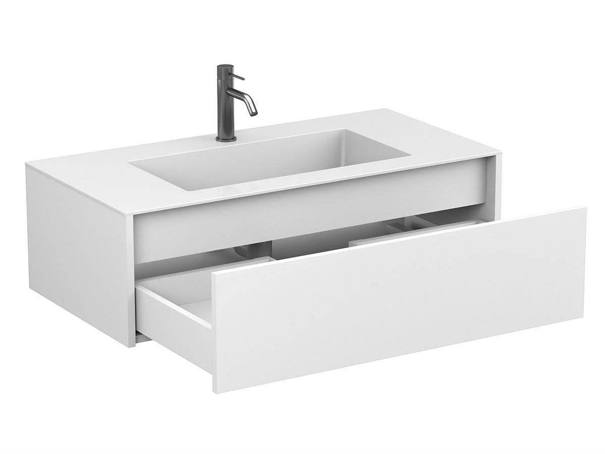 Тумби UNO в комплекті з умивальниками MIRAGGIO — разом вони утворюють гармонійний, завершений комплект. Конструкція враховує зручність монтажу та щоденного користування: шухляда відкривається плавно, а підвісний формат дозволяє легко підтримувати чистоту під тумбою.