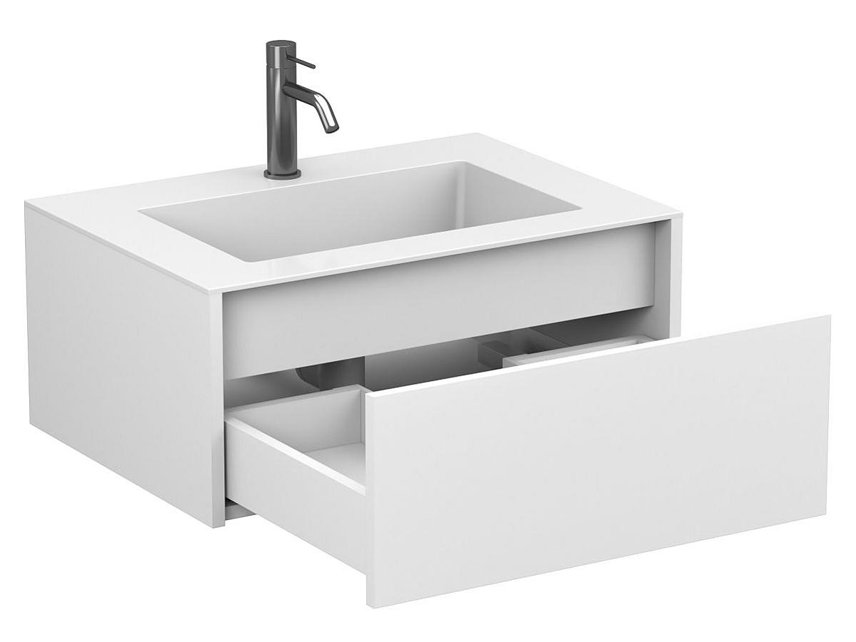 Тумби UNO в комплекті з умивальниками MIRAGGIO — разом вони утворюють гармонійний, завершений комплект. Конструкція враховує зручність монтажу та щоденного користування: шухляда відкривається плавно, а підвісний формат дозволяє легко підтримувати чистоту під тумбою.
