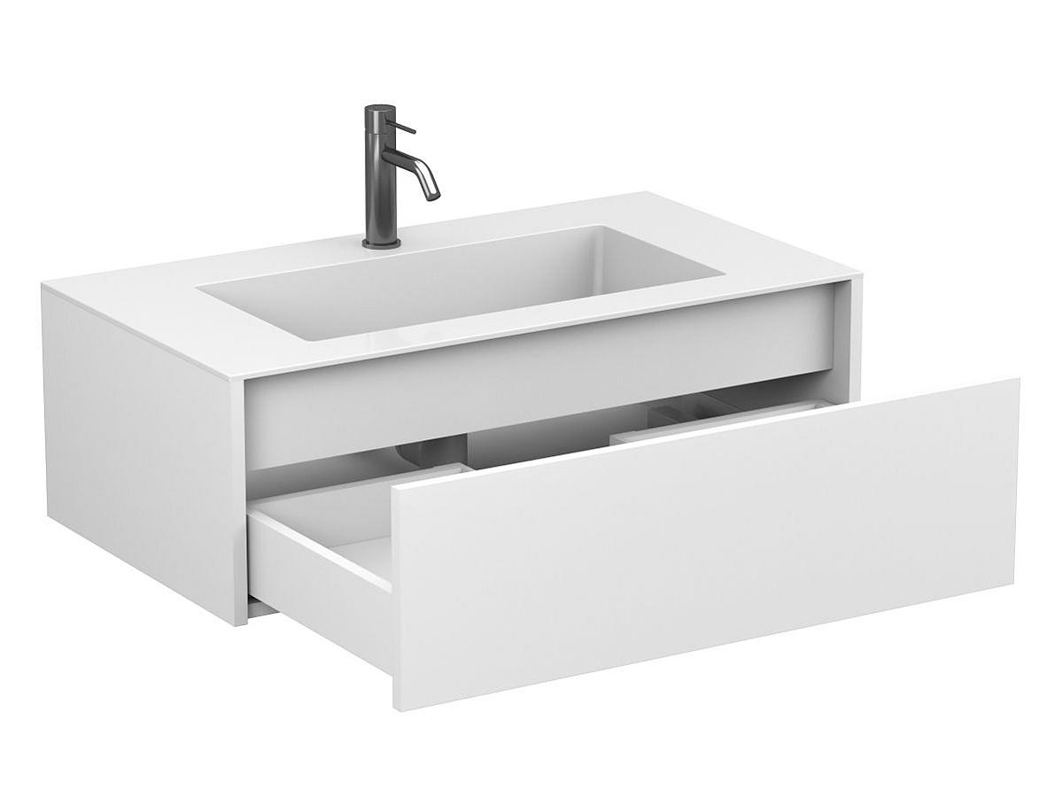 Тумби UNO в комплекті з умивальниками MIRAGGIO — разом вони утворюють гармонійний, завершений комплект. Конструкція враховує зручність монтажу та щоденного користування: шухляда відкривається плавно, а підвісний формат дозволяє легко підтримувати чистоту під тумбою.