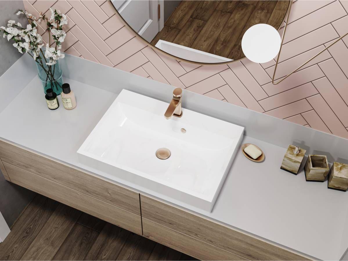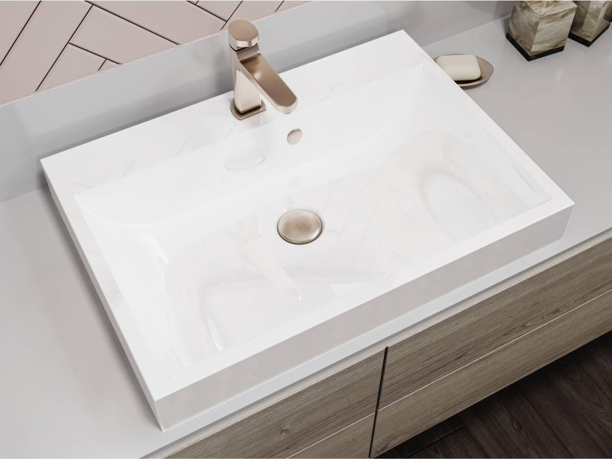Умивальник підвісний VARNA 600 MIRAGGIO виготовлений за технологією Miramarble, поверхня біла глянсова