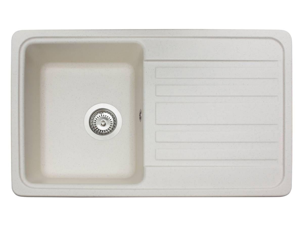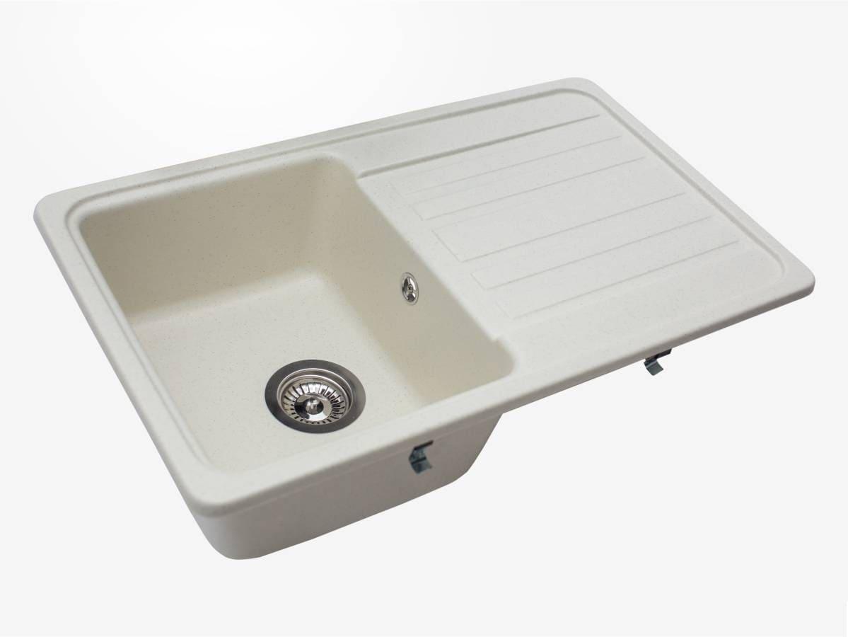 Прямокутна кухонна мийка із кварцового піску VERSAL кольору жасмін - це простір дій на кухні. Модель має об'ємну прямокутну чашу та ребристе неслизьке крило. Мийка має врізний тип монтажу.