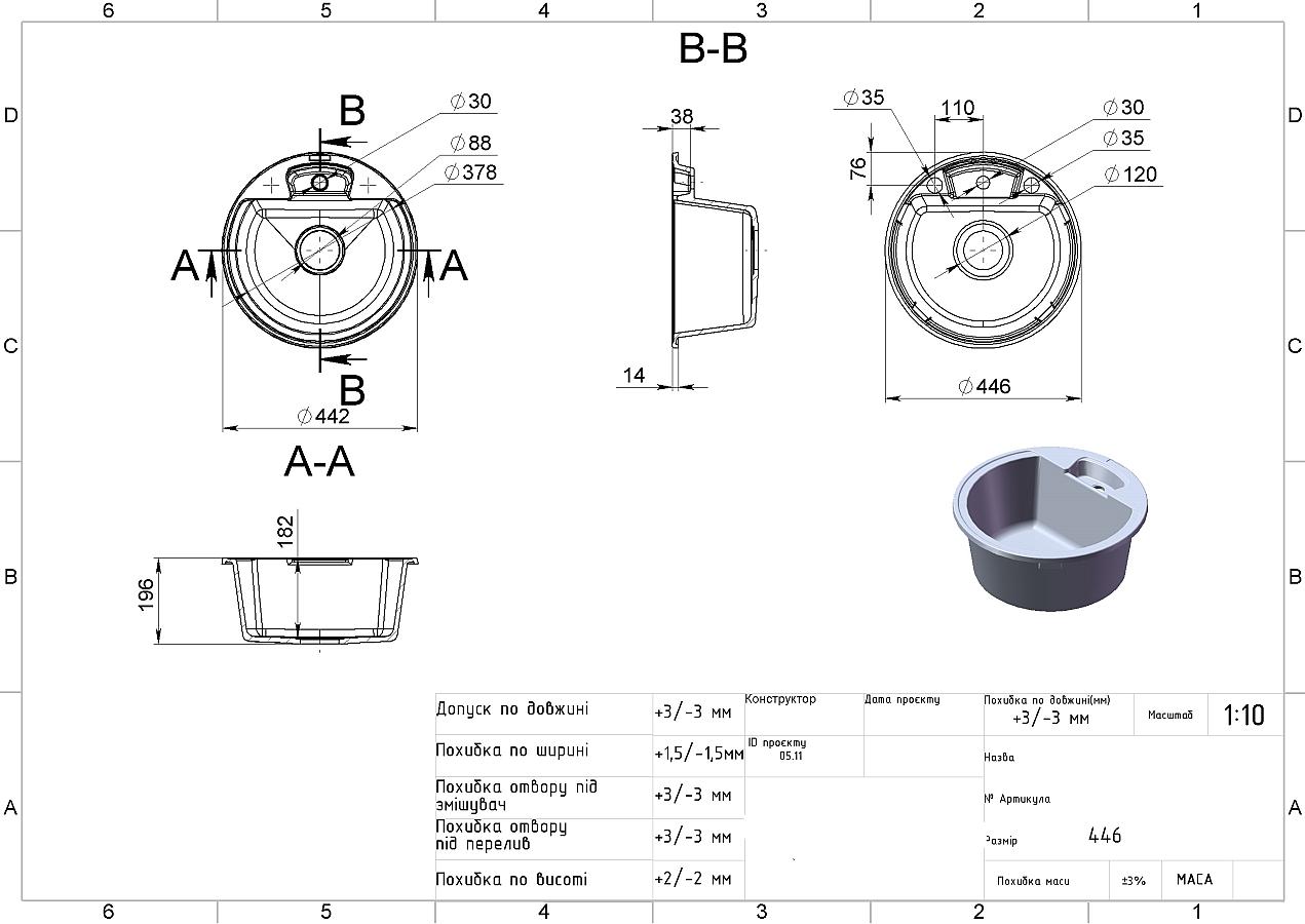 Кухонна мийка, сифон одинарний з переливом, кріплення, документація